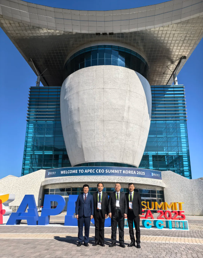 理想华莱集团董事长陈社强(右二)、总裁张先枚(左二)、总经理龙明华(右一)、副总经理兼国际业务发展中心主任何文博士(左一)