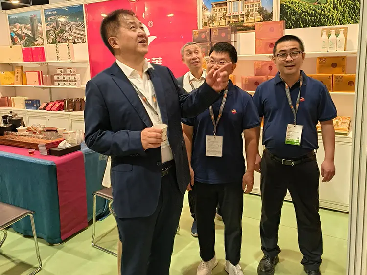 展会现场,湖南省工商联副主席漆平波,福建省福鼎市人大主任、茶产业发展领导小组常务副组长蔡梅生,益阳市政协副主席戴朝,安化县委常委、宣传部部长廖小甫等领导先后莅临理想华莱展位参观视察。对企业以科技激活传统产业、坚守品质创新的实践予以高度肯定,鼓励理想华莱依托香港平台拓宽全球市场,让安化黑茶这一世界非遗在 “一带一路” 建设中焕发新活力。
