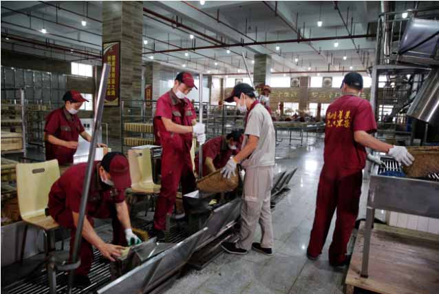 步入机器压制车间,仿佛踏入了一个充满节奏感的工业殿堂。机器轰鸣,低沉而有力,宛如激昂的进行曲,为生产奏响了序章。工人们身着统一的工作服,神情专注,手法娴熟,将精心调配的黑毛茶精准无误地送入模具。在压力的精妙作用下,原本松散的茶叶逐渐凝聚成型,紧密相拥,释放出阵阵浓郁而醇厚的茶香,弥漫在整个车间,令人心旷神怡。
