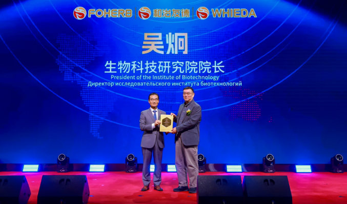 韩金明董事长向吴炯院士颁发和治友德集团生物科技研究院院长聘书
