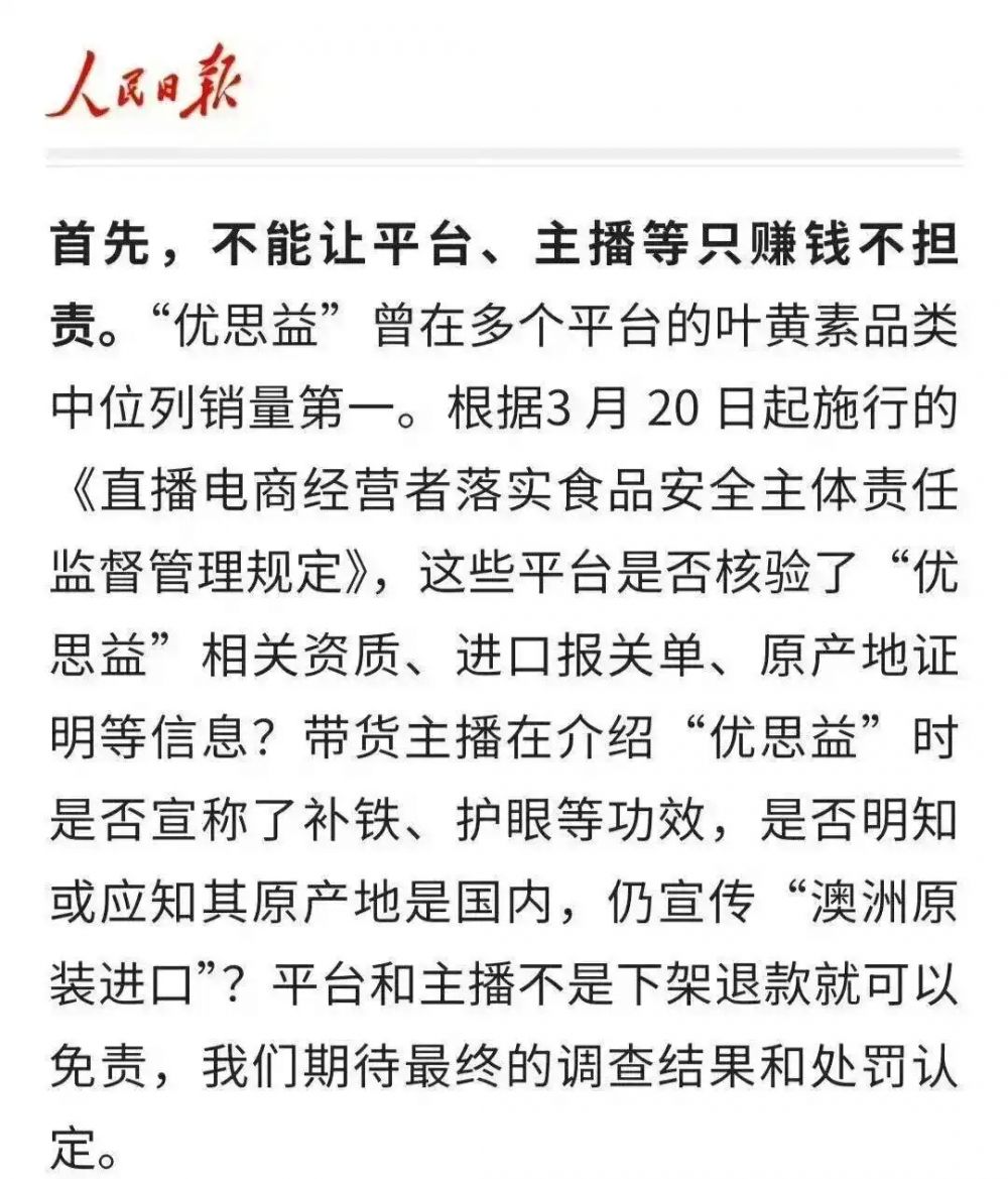 不过,好景不长,优思益的这出大戏最终还是被央视揭穿了。广东市场监管、海关、公安联合行动,杭州索象营销公司被立案,国务院食安办、市场监管总局、海关总署同步核查,三部门联合约谈平台,要求24小时下架涉事产品、全类目排查资质。